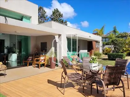 Excelente casa linear com 307,00m² em um lote de 843,92 mais 97,00m2 de área verde, casa com 4 quartos sendo 2 suítes, 2 semi-suítes, sala para 3 ambientes com lavabo, cozinha fechada , piscina aquecida ,DCE, geração de energia fotovotaica.