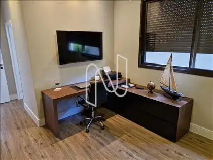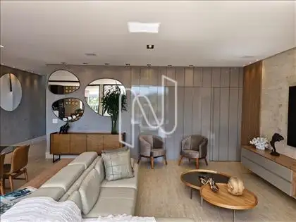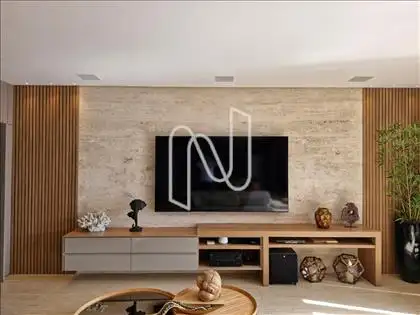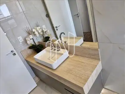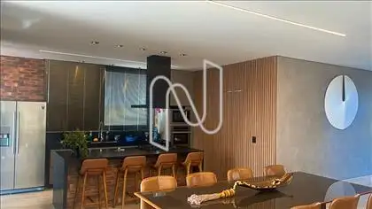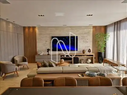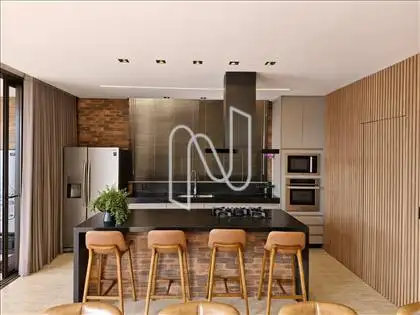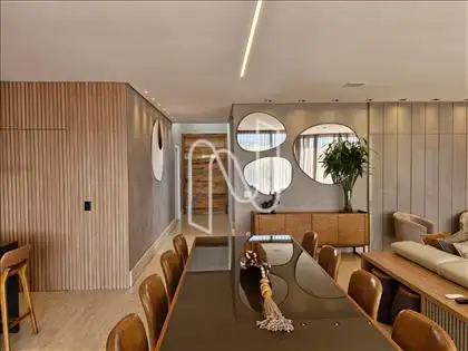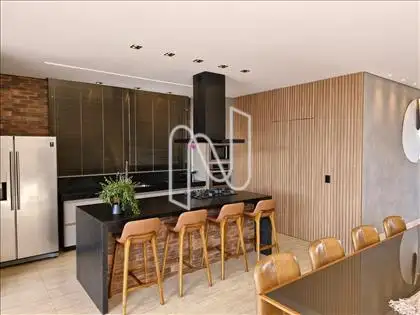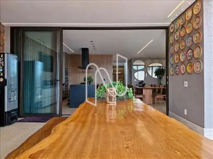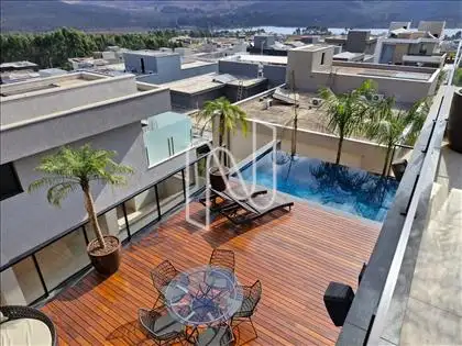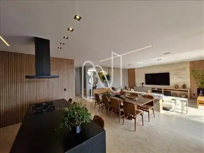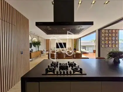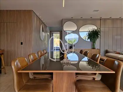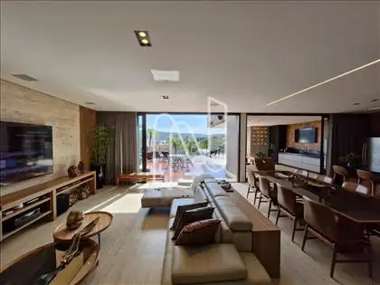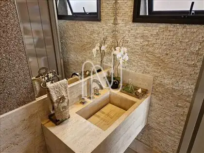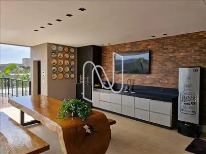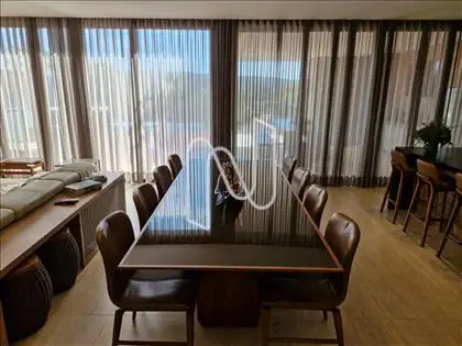Sala ampla com lavabo, integrada à cozinha em estilo americano, ao espaço gourmet e à área externa com deck de 52,75 m², piscina de 20,59 m² e uma vista panorâmica de tirar o fôlego. A área social é ideal para momentos de lazer e convivência. Conta também com área de serviço com dependência completa de empregada e uma suíte para hóspedes.