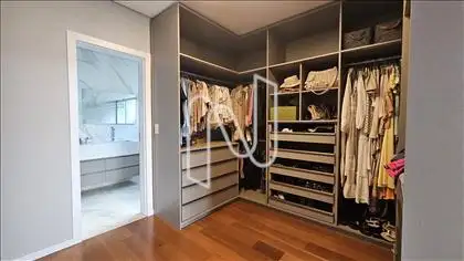 No segundo piso são 4 suites, todas com closet e a do casal com varanda com vista para a Lagoa e confortável estar íntimo.