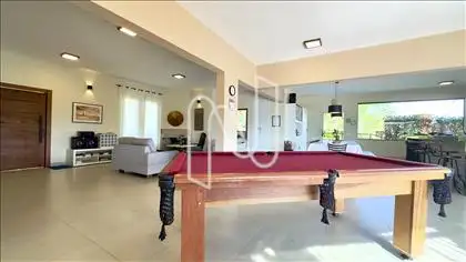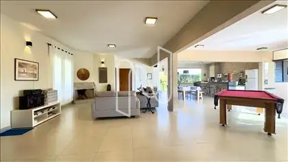 Sala para 4 ambientes, com estar, jantar, estar íntimo, lavabo e jogos.